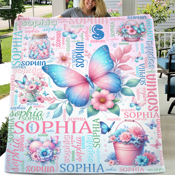 Custom Butterfly Blanket Name Personalized Baby Blanket - Gifts for Children Newborns