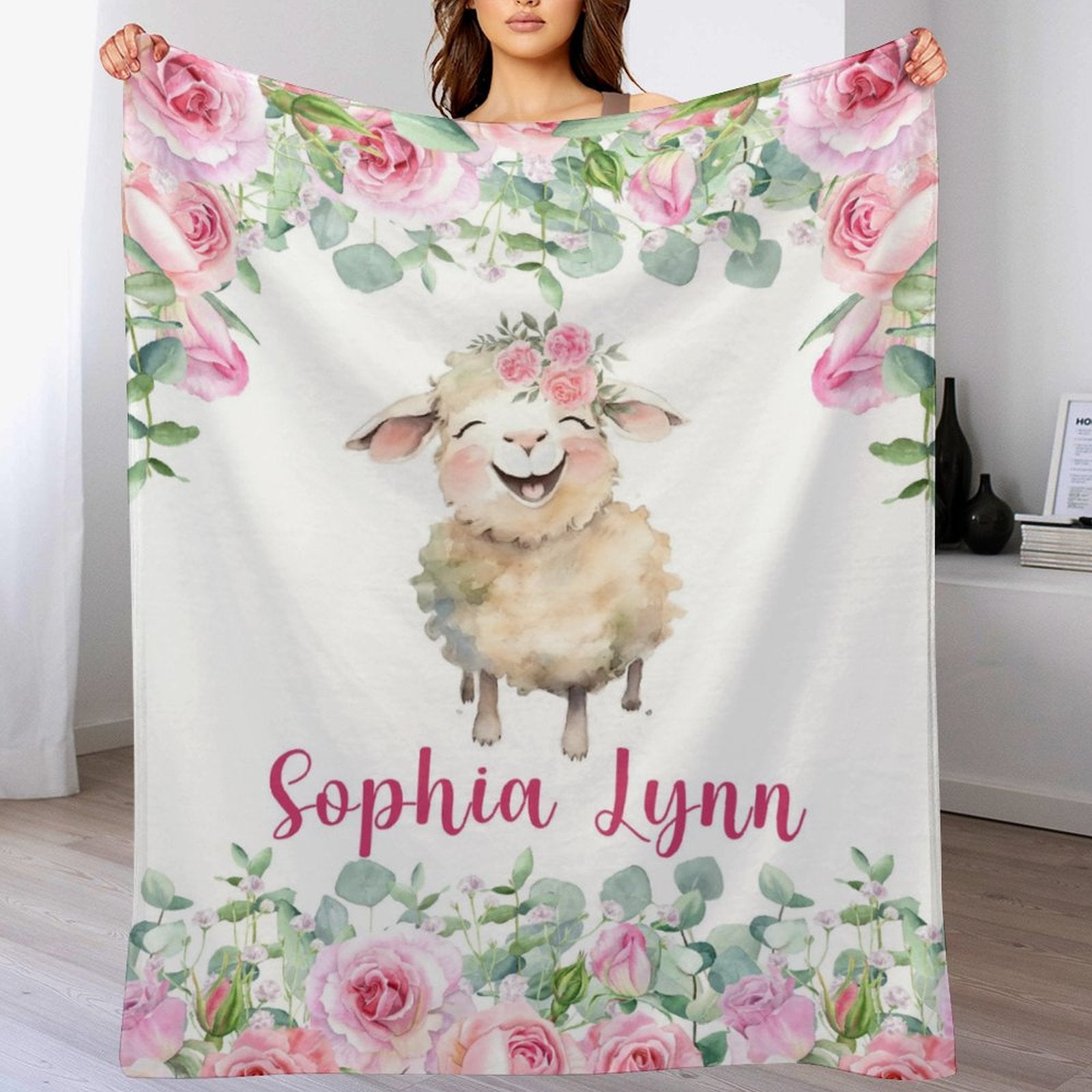 Livraison gratuite✈️Couverture d'agneau avec nom personnalisé pour bébé fille