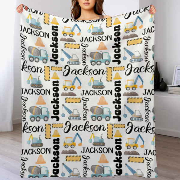 Customized Name Construction Truck Blanket, Children's Gift