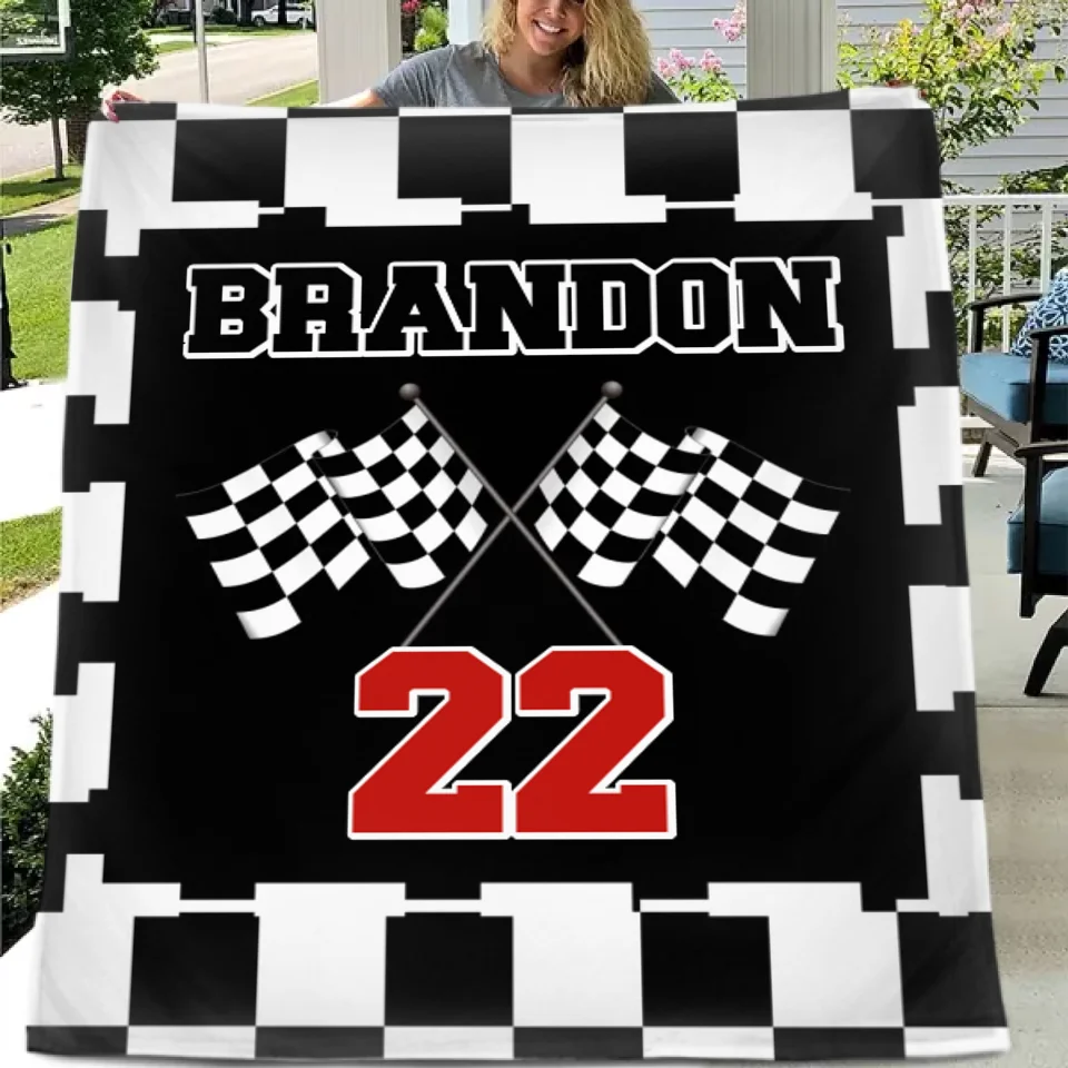 Customized Black and White Chevron Blanket - Personalized Name and Number Black and White Flag Pattern Blanket - A Gift For Friend,Colleagues