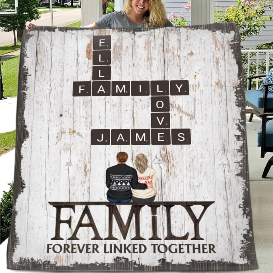 Available Product: Customized Family Blankets - Soft Blanket With Personalized Family Figures And Scrabble Words - A Gift For Family