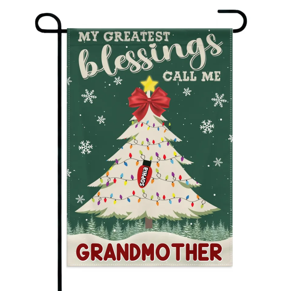 Available Product: Customized Garden Decorations For Christmas - Personalized Text And Grandchildren's Names Christmas Tree Garden Flag - Christmas Gifts For Grandma