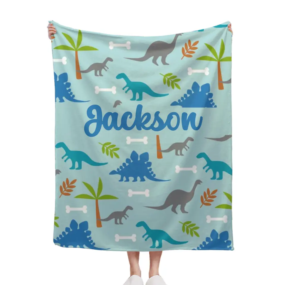 Produit disponible: Couverture Nom personnalisé de silhouette de dinosaure d'aquarelle