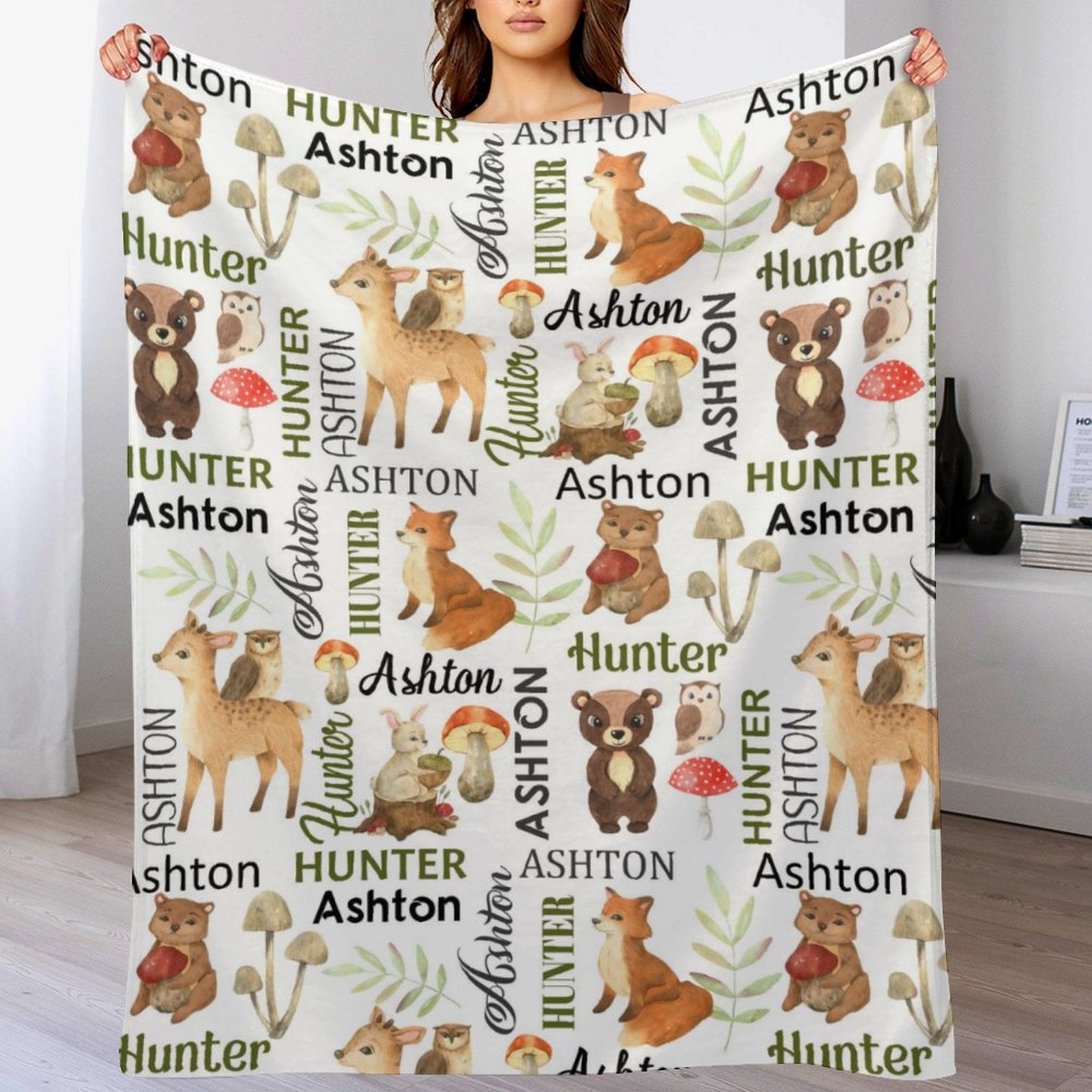 Livraison gratuite✈️Couverture personnalisée avec nom d'animaux de la forêt