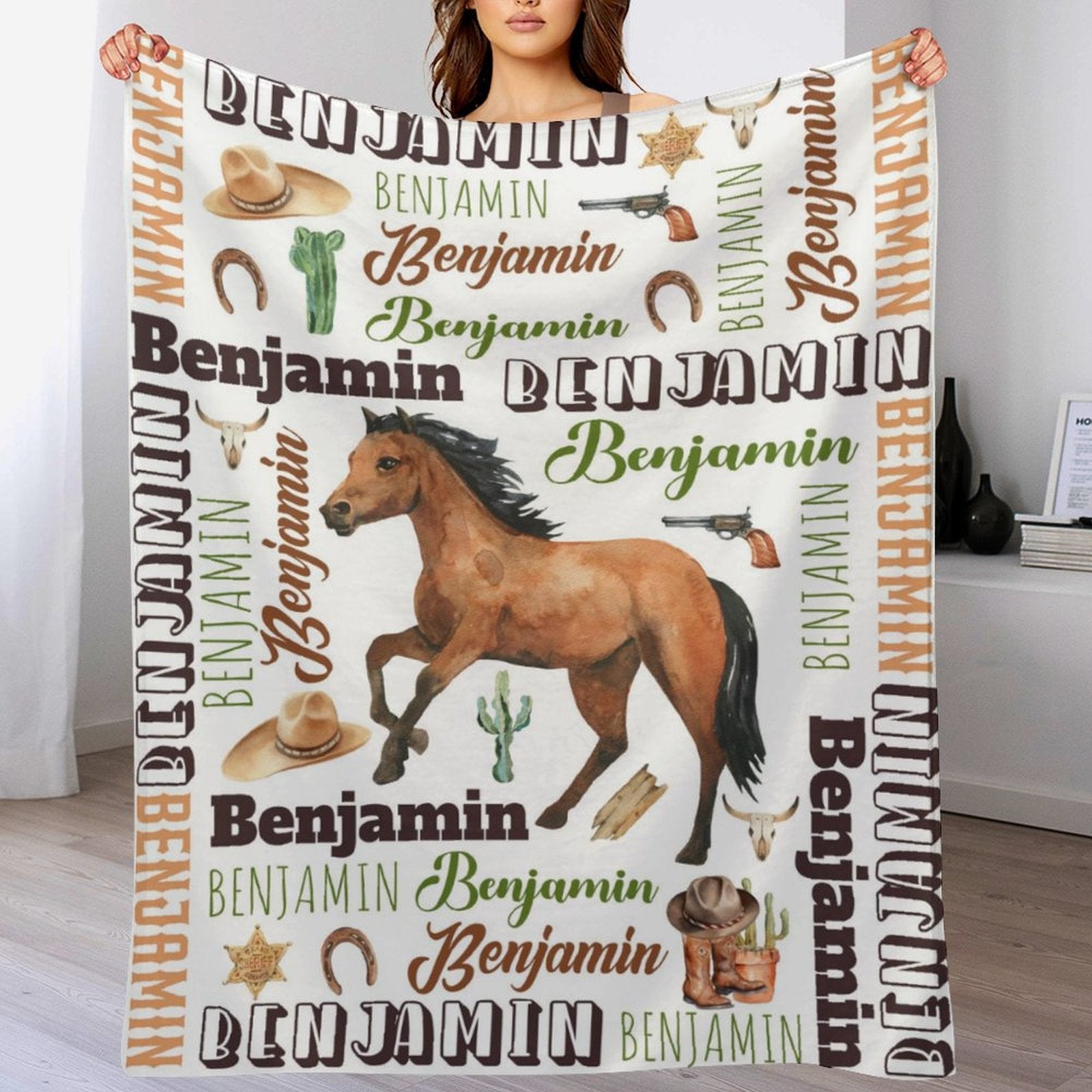 Livraison gratuite✈️Couverture personnalisée en denim cheval marron avec nom personnalisé