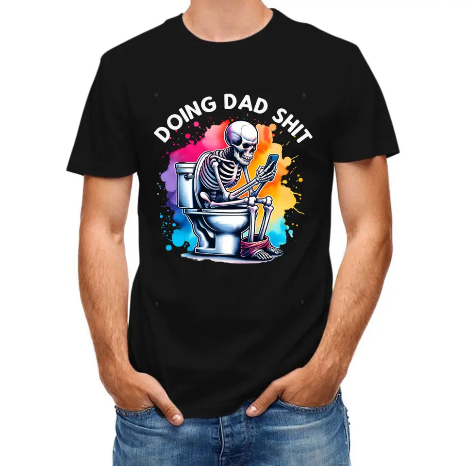Conception drôle de sublimation de toilette squelette, T-shirt tendance pour la fête des pères / Noir / S