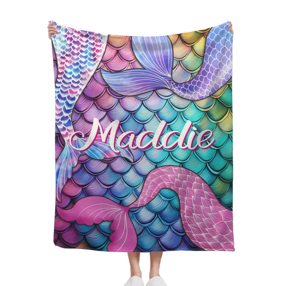 Mermaid Themed Customized Name Blanket Birthday Gift for Toddler