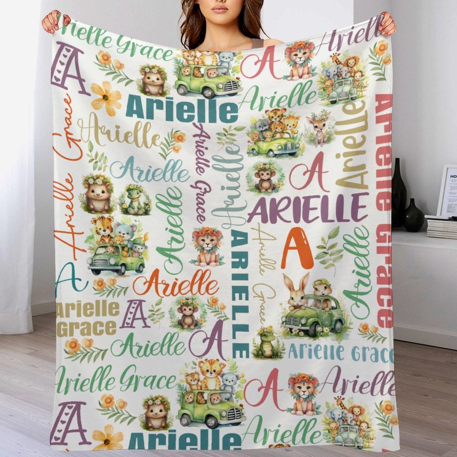 Livraison gratuite✈️Couverture personnalisée pour bébés filles - Couverture à thème Art Safari avec nom personnalisable