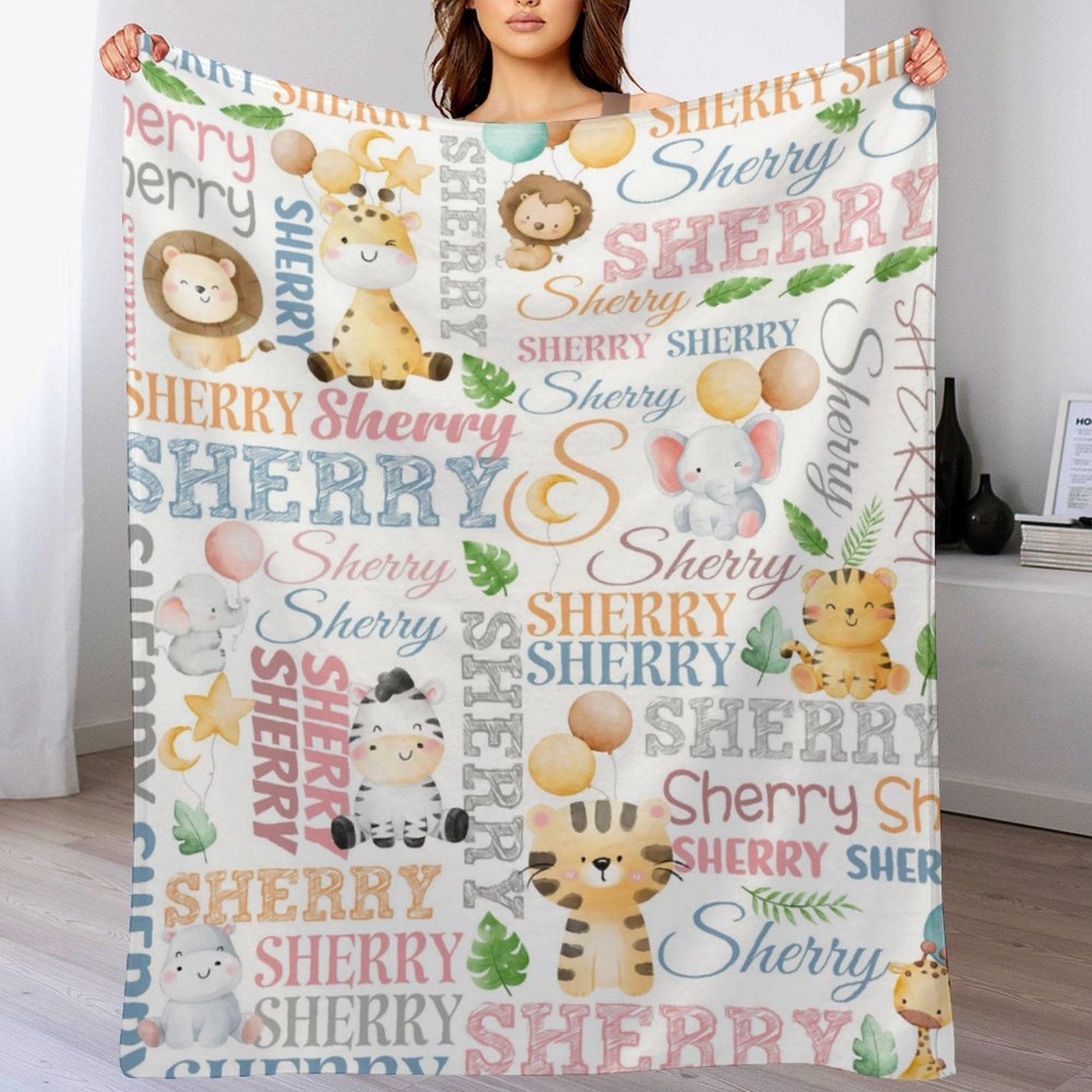 Livraison gratuite✈️Couverture personnalisée avec nom de bébé, Lion, éléphant, girafe