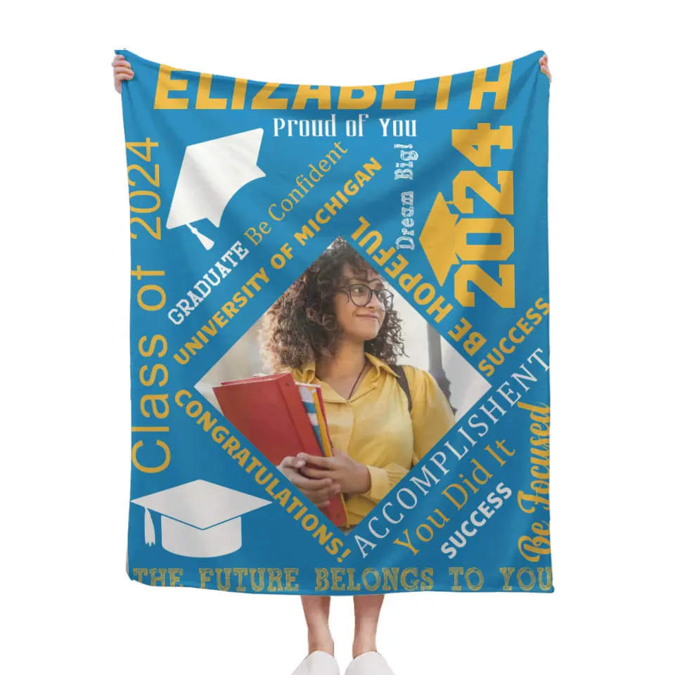 Couverture personnalisée, couverture de classe de 2024, cadeau de remise des diplômes universitaires pour elle ou lui
