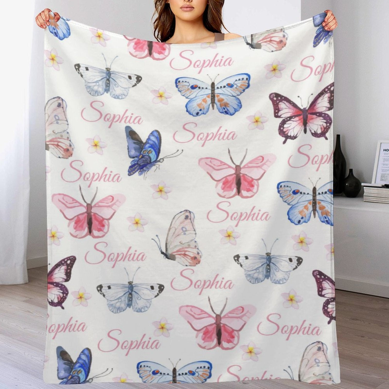 Livraison gratuite✈️ Couverture personnalisée avec nom de bébé fille papillon
