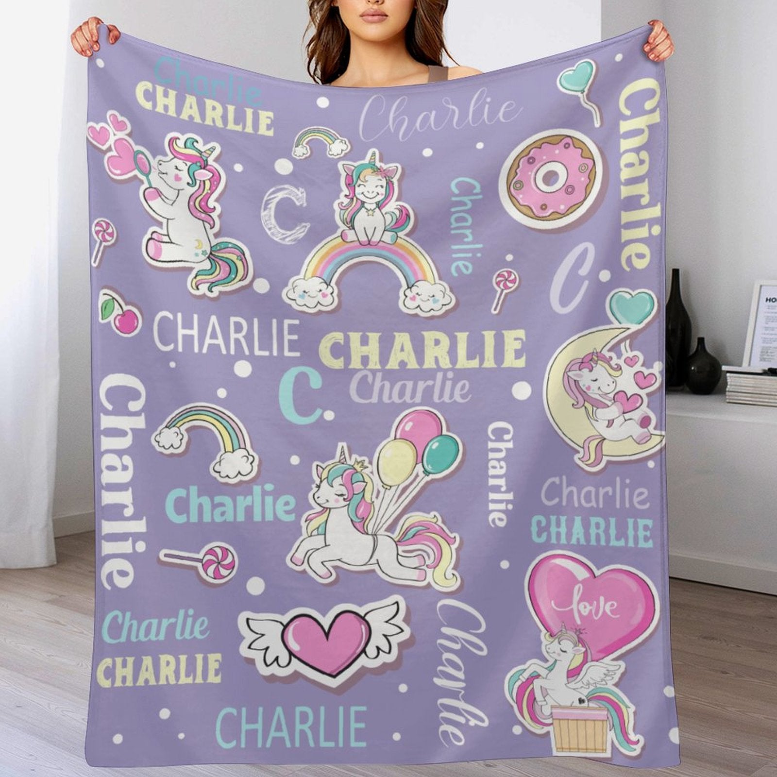 Livraison gratuite✈️Nom personnalisé personnalisé pour bébés filles enfants en bas âge-couvertures licorne arc-en-ciel