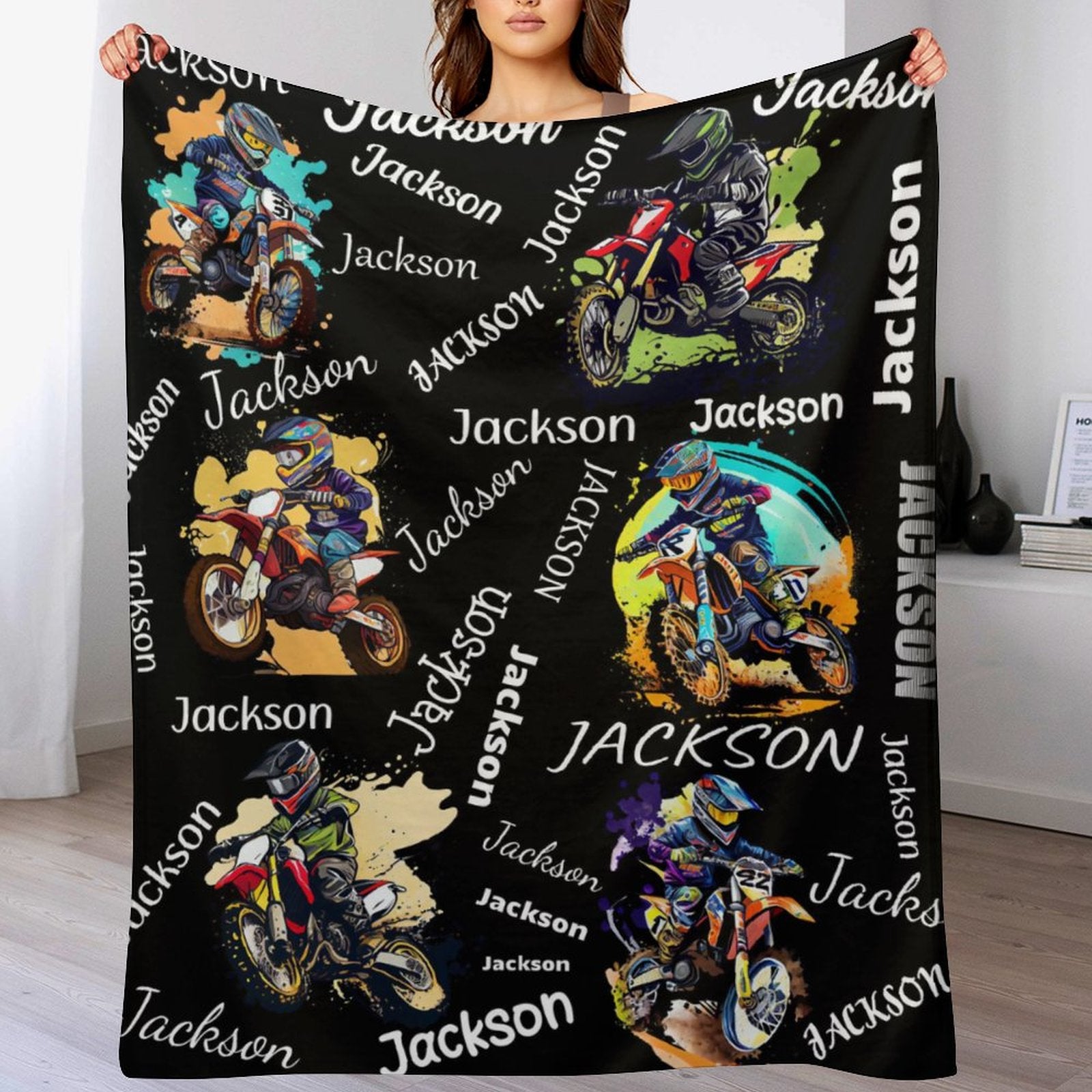 Livraison gratuite✈️Couverture personnalisée avec nom de motocross pour enfants