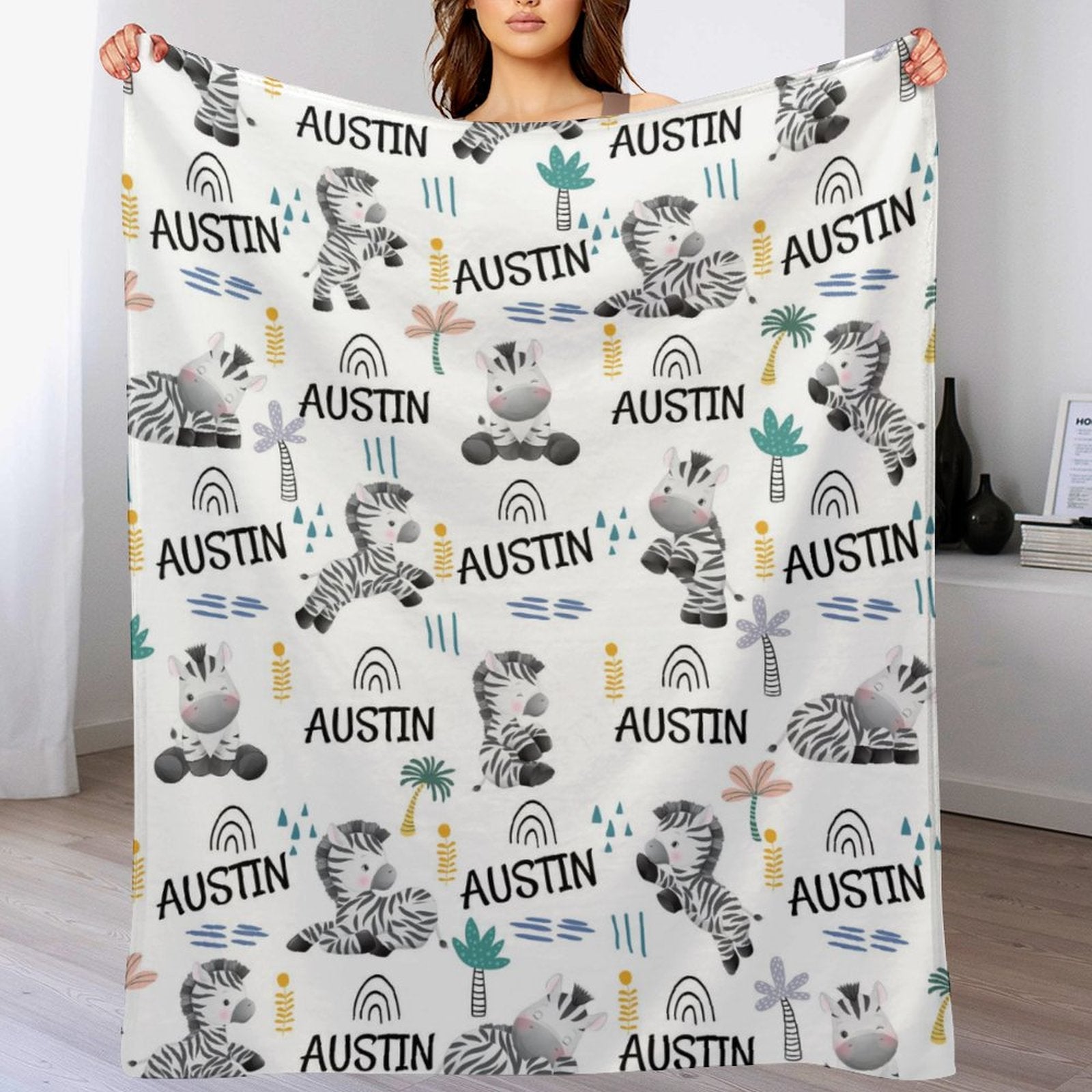 Livraison gratuite✈️Couverture pour bébé zèbre avec nom personnalisé