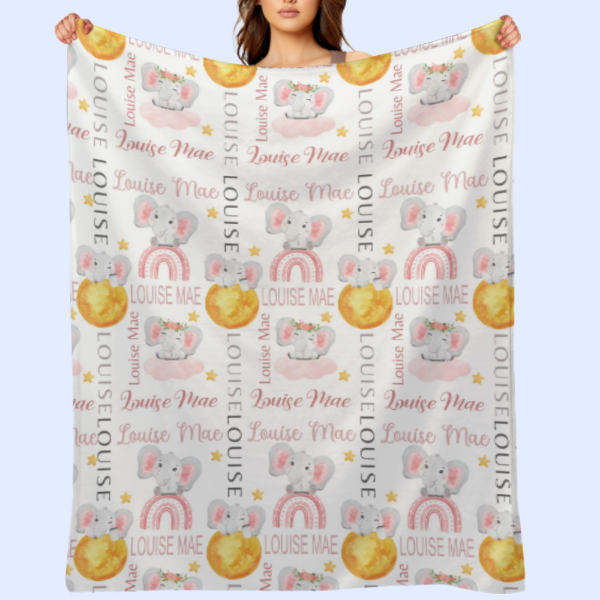 Livraison gratuite✈️ Couverture bébé éléphant lune et étoiles personnalisée