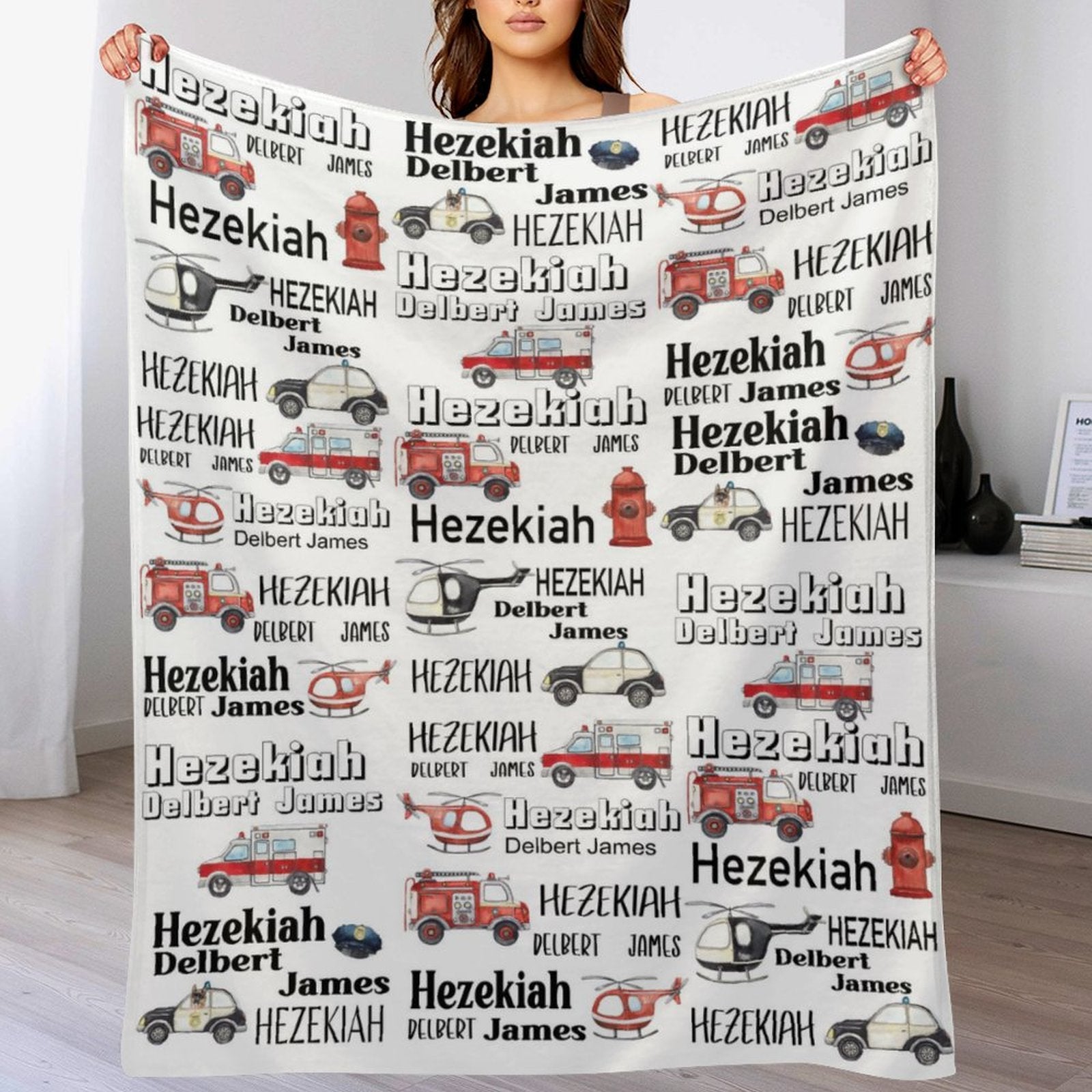 Livraison gratuite✈️Véhicules d'urgence personnalisés, voiture de police, camion de pompiers Couverture nom de bébé