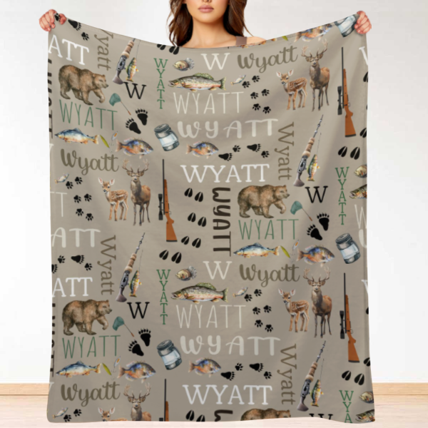 Personalized Hunting Fishing Blanket - Custom Hunting Baby Blanket- Hunting Baby Blanket - Personalized Name Blanket - Outdoors Bear Deer