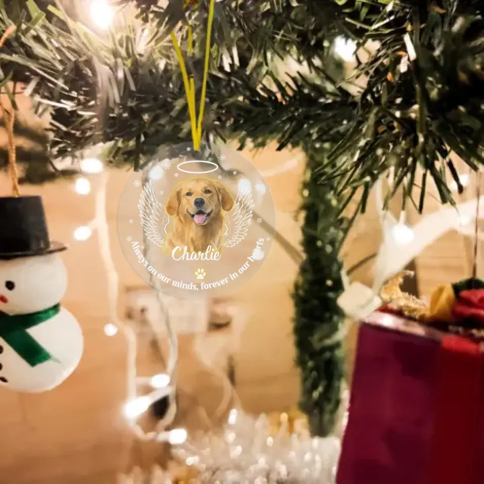 Ornement acrylique commémoratif personnalisé Pet Photo Paw Prints In Our Hearts - Cadeau pour les amoureux des animaux de compagnie