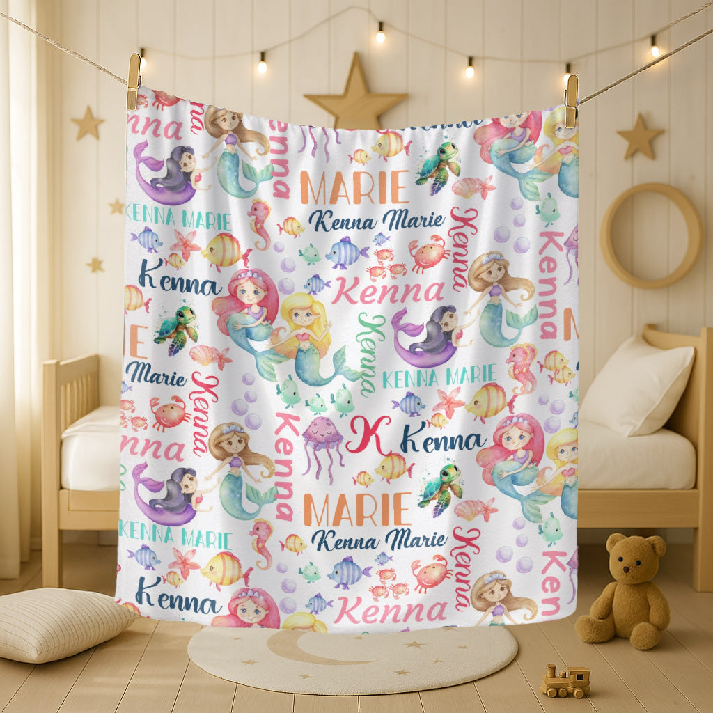 Livraison gratuite✈️Couverture personnalisée pour bébé à motif de nom de sirène