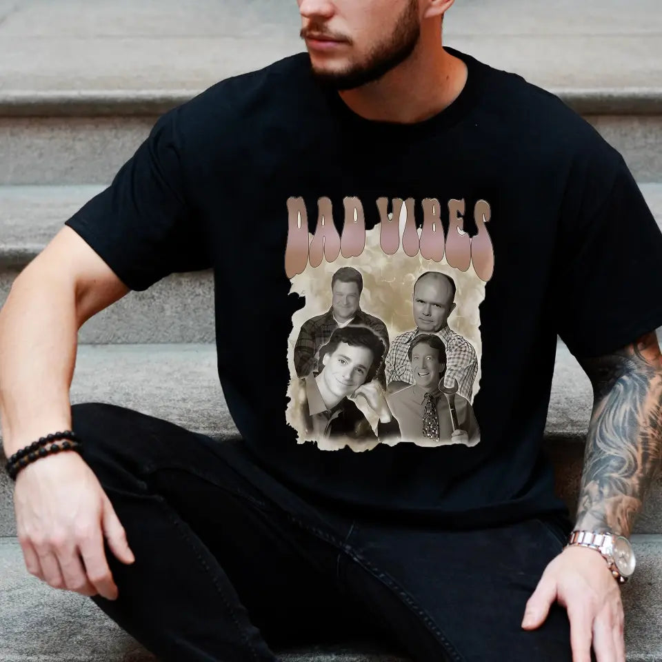 T-shirt Dad Vibes vintage des années 90, cadeau de la fête des Pères / Noir / 6XL