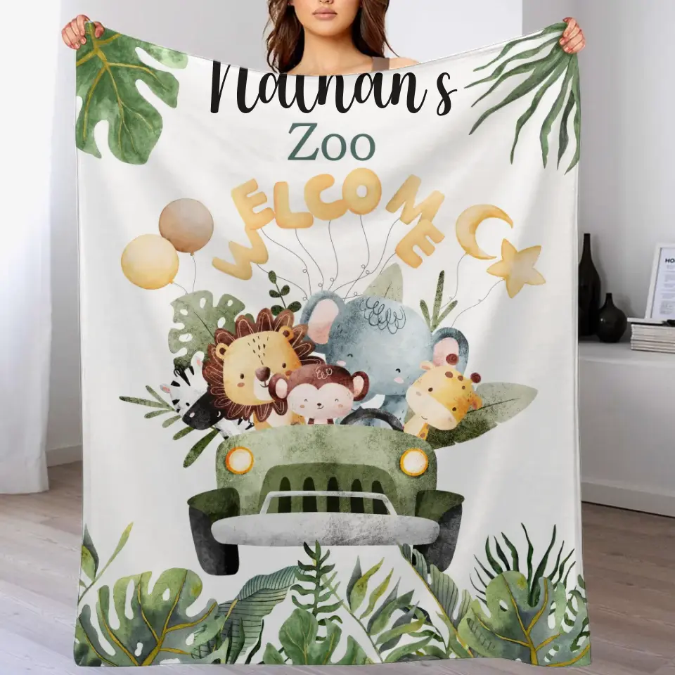 Animaux de safari aquarelle personnalisés accueillant avec couverture de camion