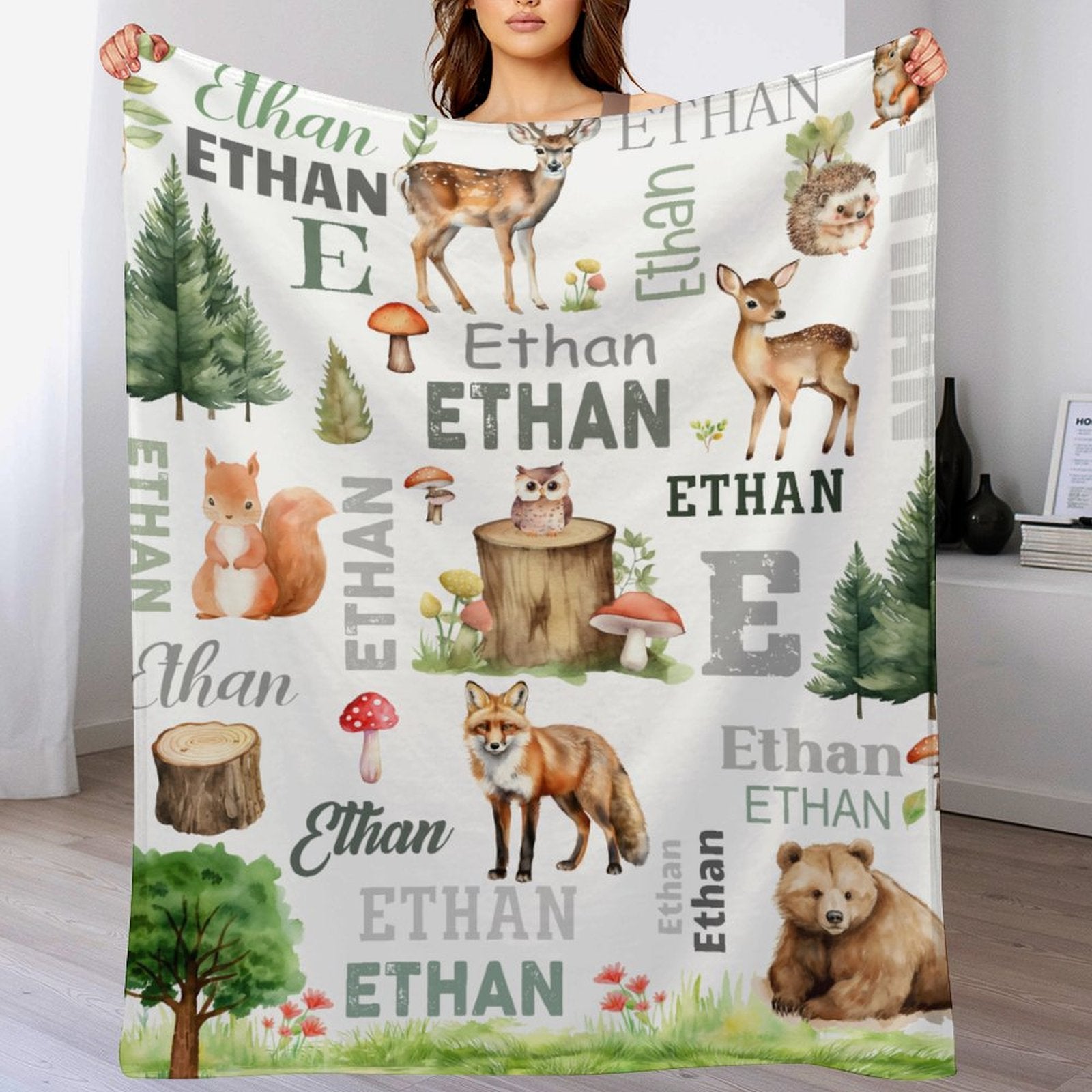Livraison gratuite✈️Couverture personnalisée en forme d'animal de la forêt, nom de bébé personnalisé pour enfants, cerf et renard personnalisés
