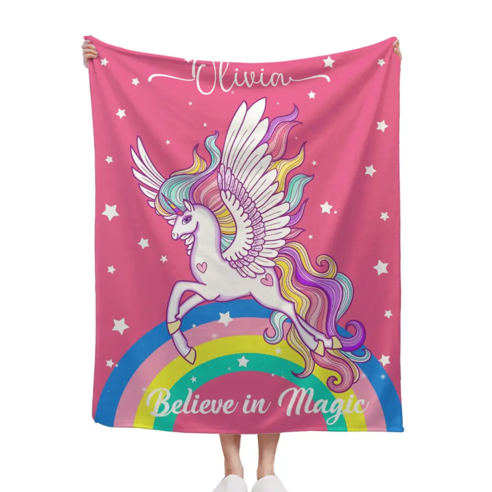 Couverture cadeaux licorne - Couverture personnalisée avec nom d'étoiles arc-en-ciel