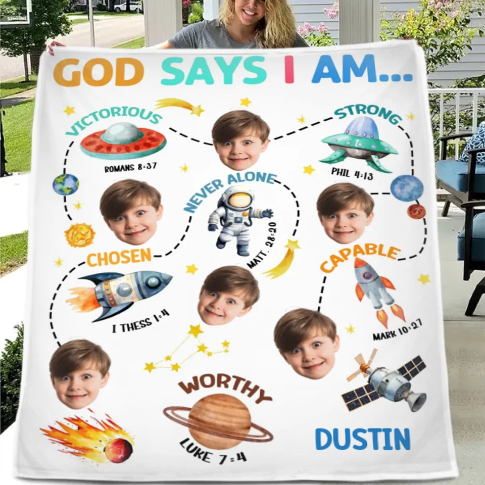 Available Product: Blankets with Customisable Photo - Personalised Photo and Name Cartoon Print Blanket - A Gift For Boy,Girl,Grandchildren
