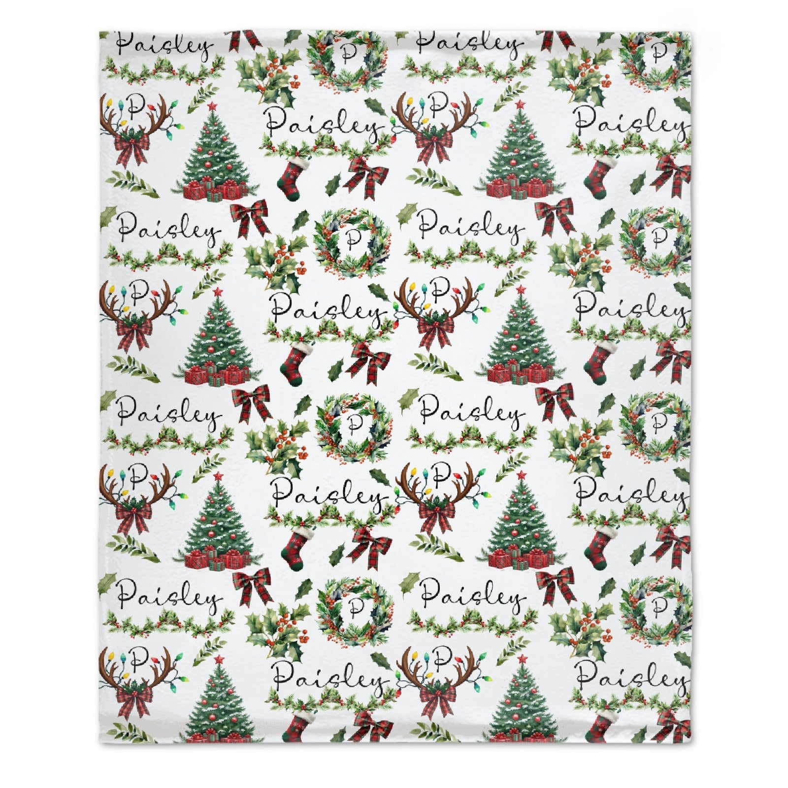 Personalized Christmas Wreath Baby Blanket - Custom Name Flannel Throw, Warm Holiday Gift for Babies & Kids