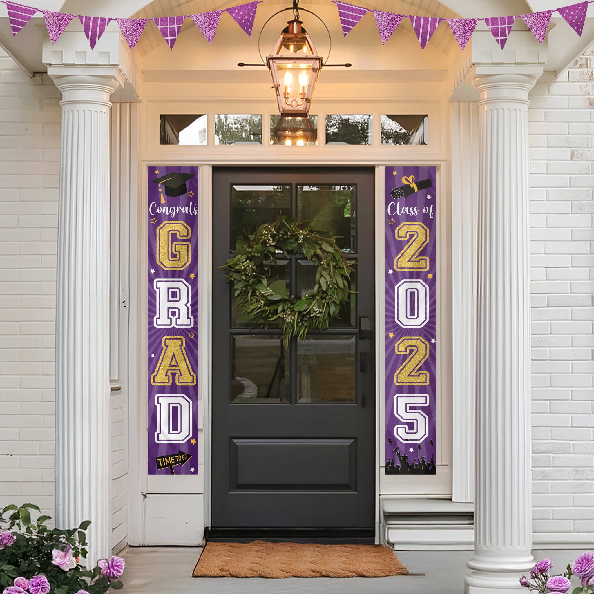 Welcome guests and celebrate your graduate’s big achievement with our vibrant Class of 2025 Graduation Door Banner Set! This stylish purple and gold decor instantly elevates your porch or front door, creating a festive atmosphere perfect for capturing memorable moments with family and friends.