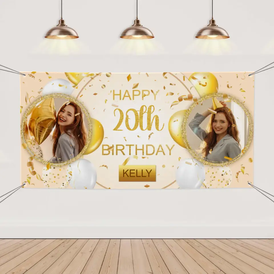 Available Product: Custom Happy Birthday Banner Personalized Banners and Signs with Photo Name for Women Men Kids Party Decorations