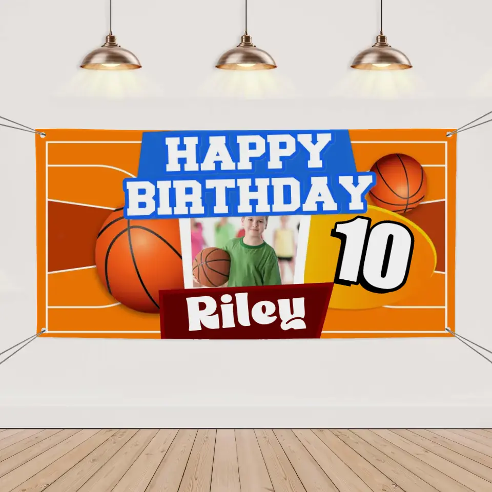 Available Product: Custom Happy Birthday Banner - Personalized Basketball Banner - Gift For Children,Boy Girl Sports