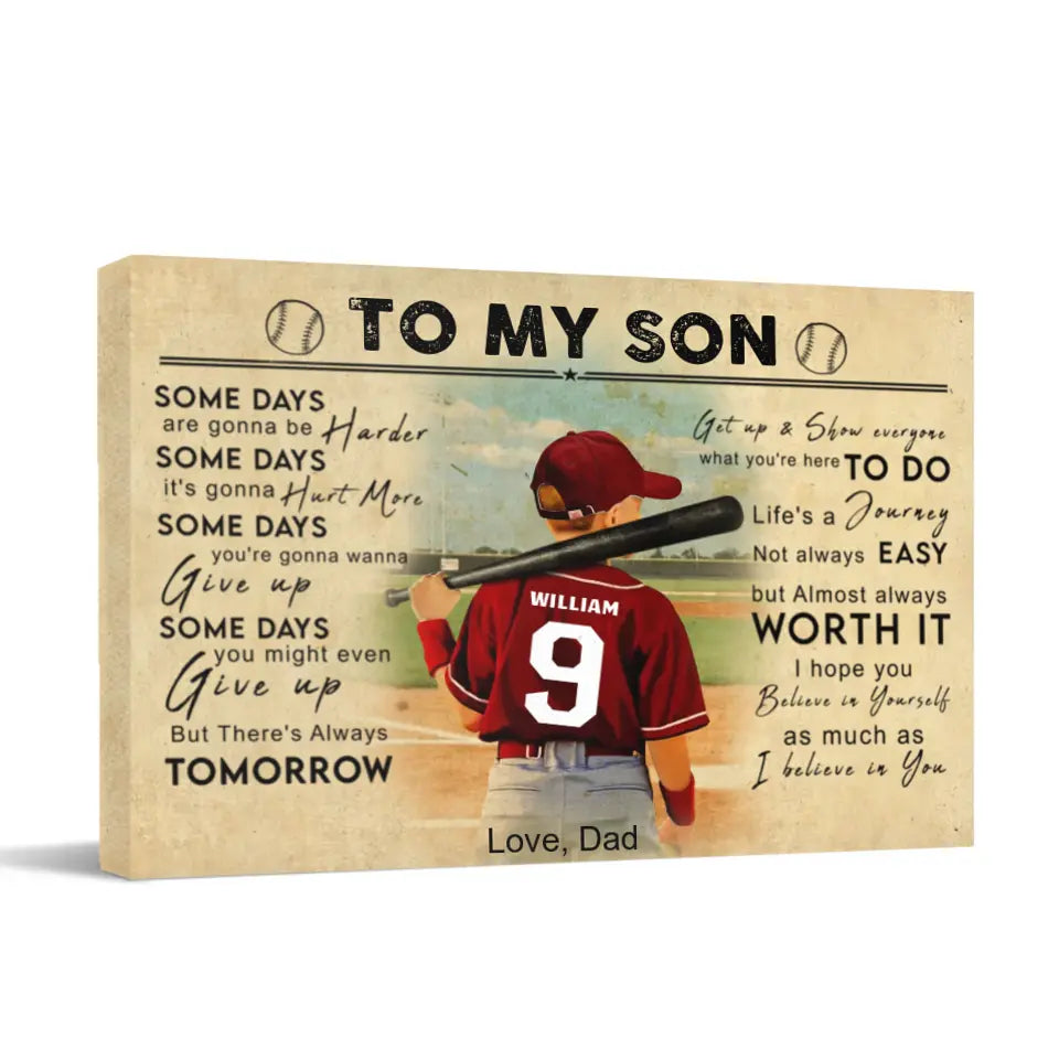 Available Product: Custom Personalized To My Son Baseball Canvas Wall Art - Canvas with custom Name, Number, Appearance & Landscape, Vintage Style, Sport Gifts For Son
