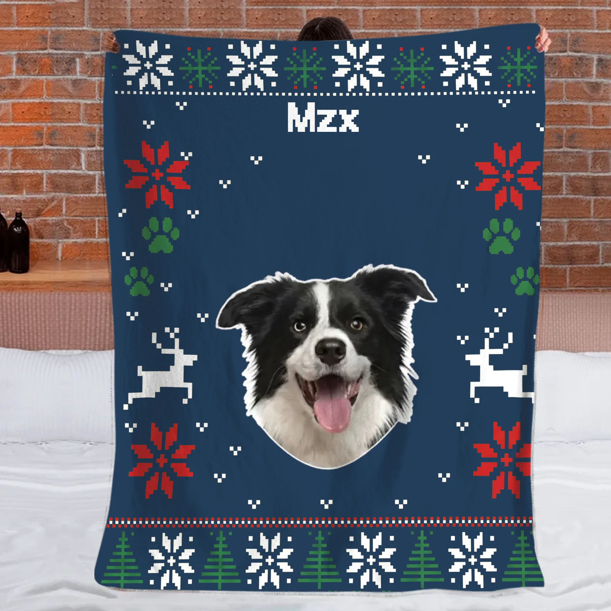 Available Product: Custom Pet Photo Christmas Blanket – Personalized Pet Name Throw – Gift for Pet Parents