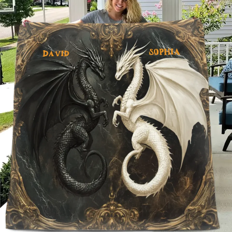 Available Product: Customized Black and White Dinosaur Blanket - Personalized Name Dark Flannel Blanket - A Gift For Dinosaur Lovers