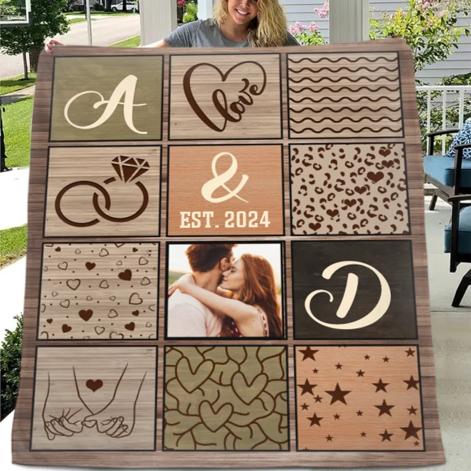 Customized Couple Photo Blanket - Personalized Initials, Date And Photo Flannel keepsake Blanket - A Gift for Couples,Wife, Husband