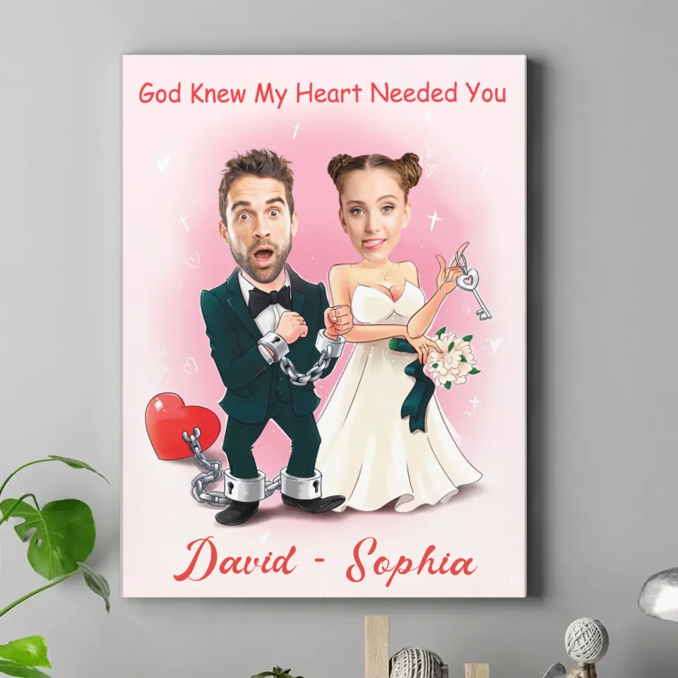 Available Product: Customized Couple's Theme Wall Painting - Personalized Couple Photo and Name Wedding Character Image Frameless Canvas Painting - A Gift For Girlfriend,Boyfriend,Wife,Husband