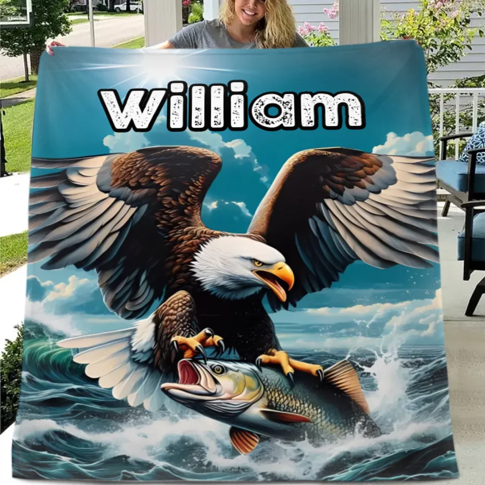 Customized Eagle Themed Blanket - Personalized Name Eagle Catching Fish Blanket - A Gift For Bird Lover,Eagle Lover,Friend,Colleagues