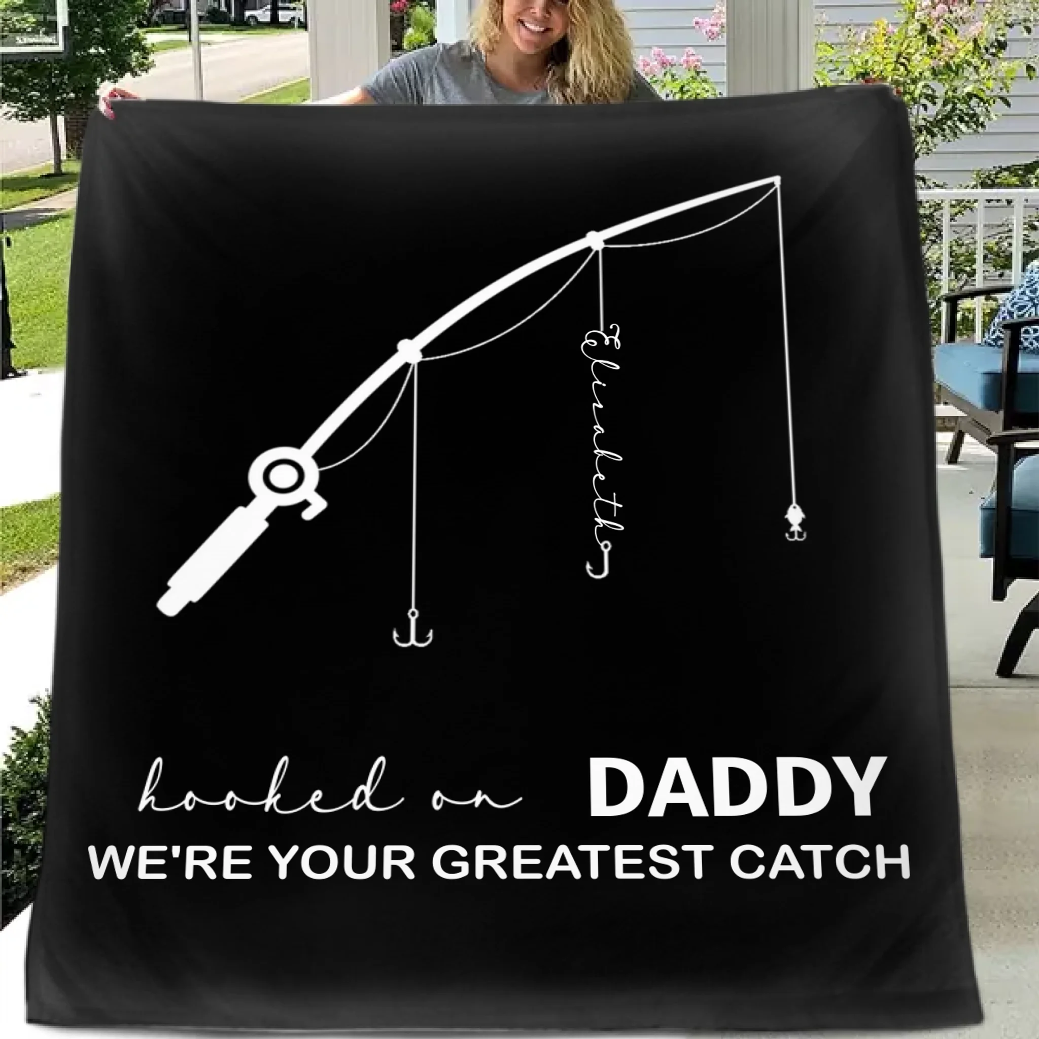 Available Product: Customized Fishing Rod Pattern Blanket - Personalized Name,Designation and Theme Multi-colored Fishing Themed Blankets - A Gift For Dad,Grandpa,Family,Angler