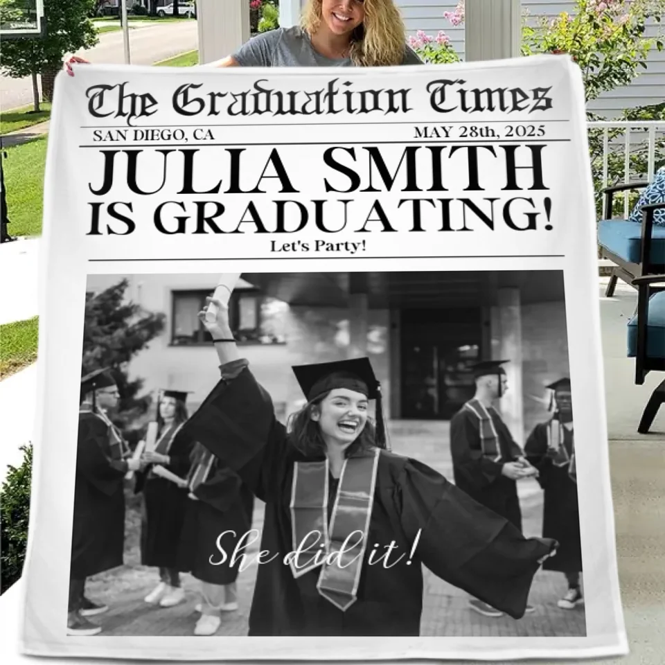 Customized Graduation Themed Blankets - Personalized Name,Photo and Date Graduation Season Blankets - A Graduation Gift For Kids,Students,Roommates
