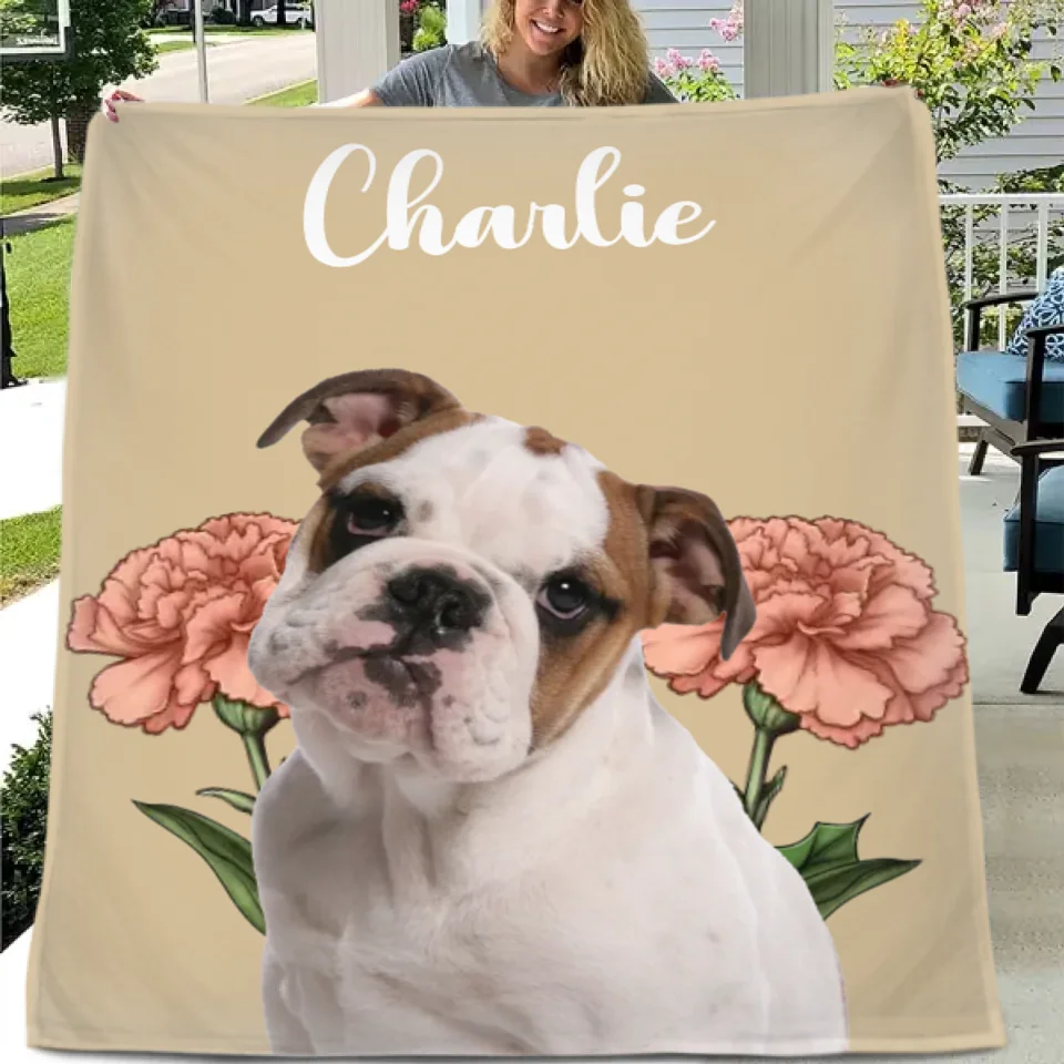 Available Product: Customized Pet Portrait Blanket - Personalized Pet Name, Photo and Birthday Flower Flannel Blanket - Warm Gift For Pet Owners,pet Lovers