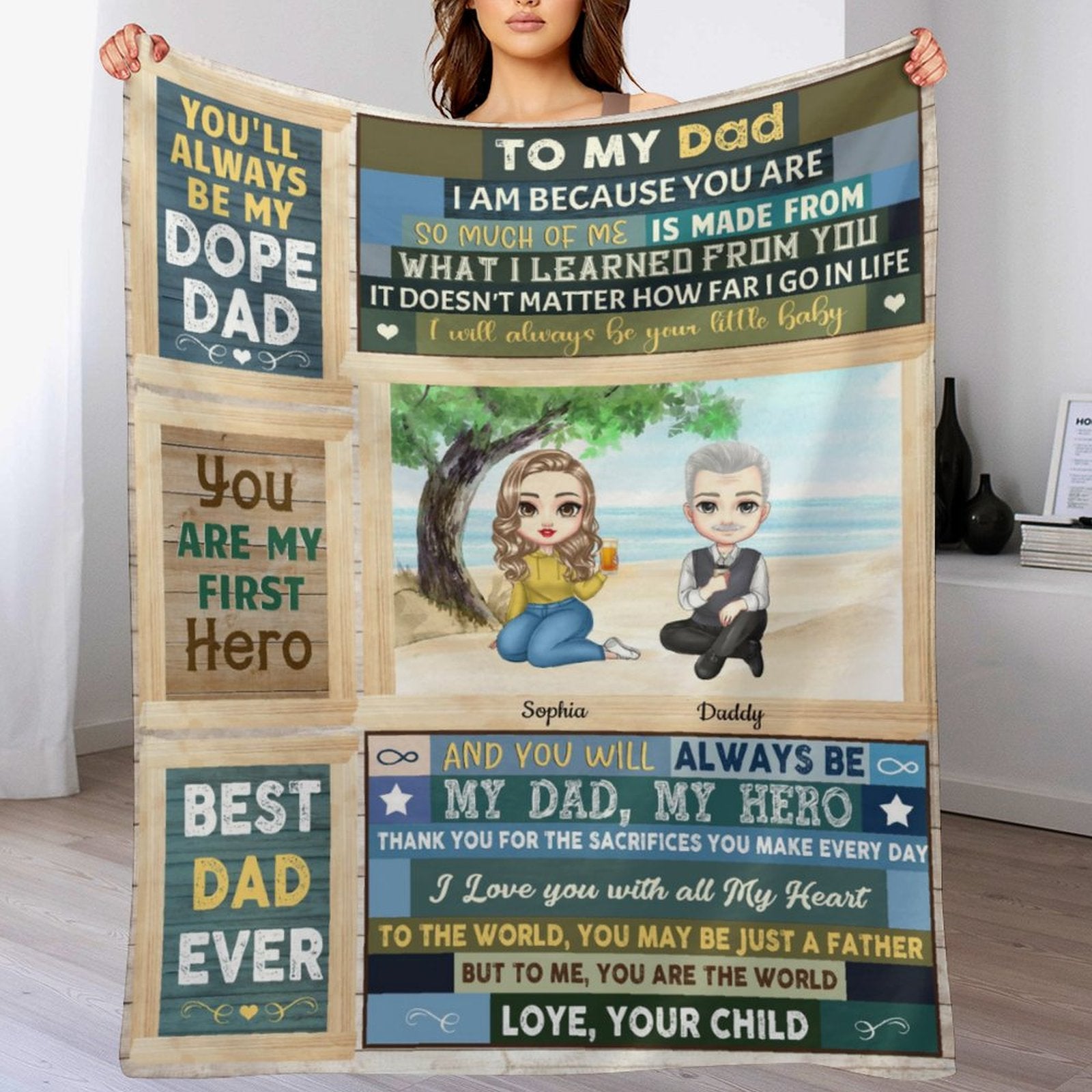 Dad Is My First Hero - Personalized Blanket