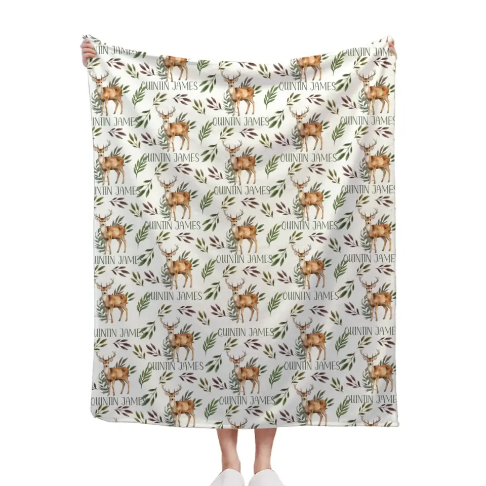 Available Product: Deer Blanket for Boys, Customized Name Baby Boy Blanket, Gift for Baby