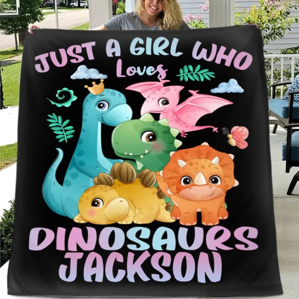 Available Product: Dinosaurs - Personalised Name Dinosaur Blanket - Gifts for Girls,Dinosaur lovers