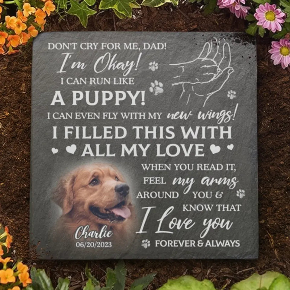 Available Product: Don't Cry For Me, I'm Okay - Personalized Custom Photo Memorial Stone - Sympathy Gift For Pet Owners