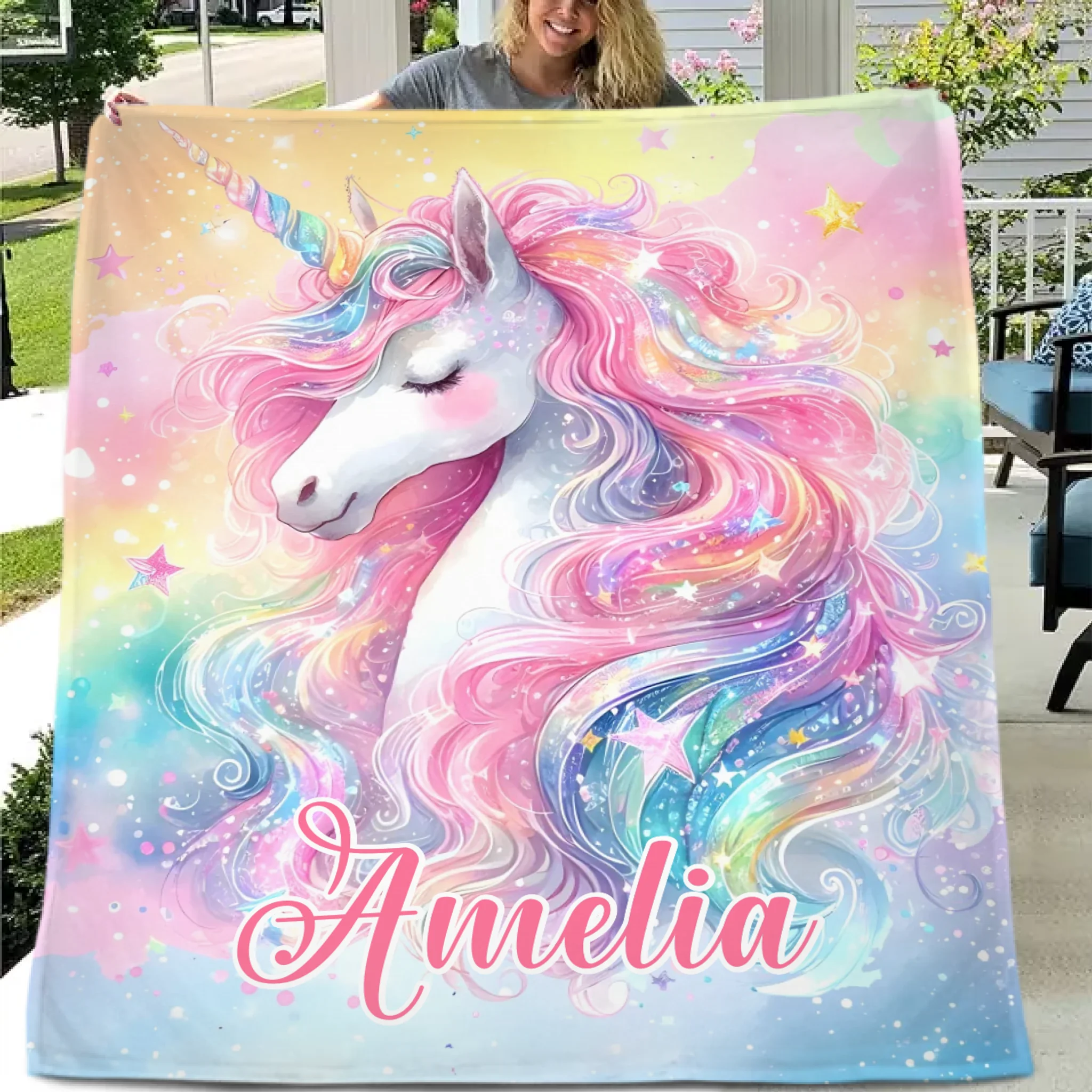 Dreamy Unicorn Blanket - Personalized Blanket - Gift for Girls - SDG