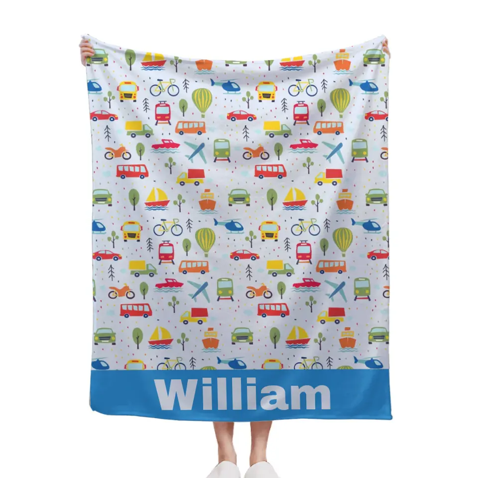 Available Product: Personalized Baby Blanket with Name for Boys, Car Truck Aircraft Small Picture Blanket for Toddlers