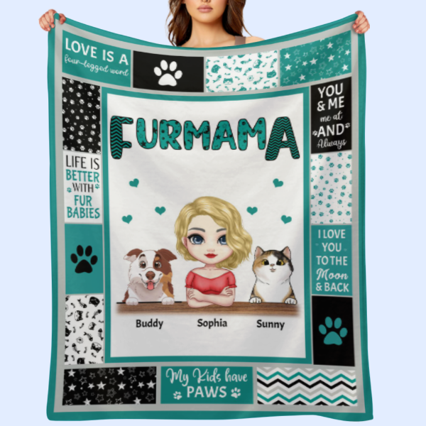 Fur Mama - Personalized Blanket - Birthday, Loving, Funny Gift For Dog Mom, Cat Mom, Pet Owner