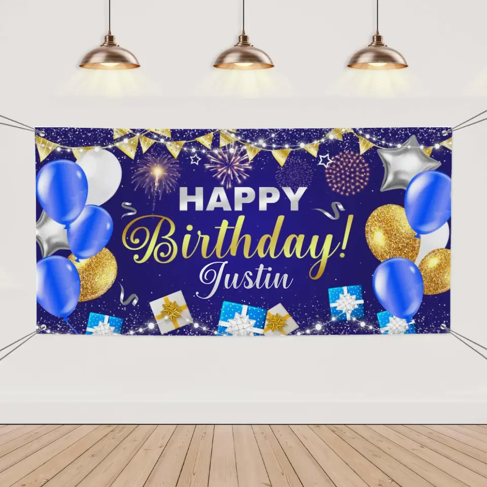 Available Product: Happy Birthday Backdrop Banner - Personalized Firework Balloon Banner - Gift For Birthday Person