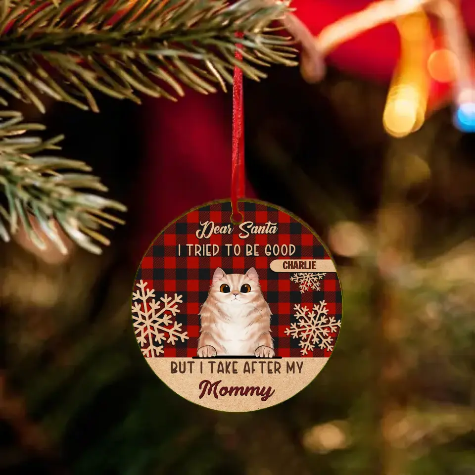 I Tried To Be Good But I Take After My Mommy - Personalized Custom Round Shaped Wood Christmas Ornament - Gift For Pet Lovers, Christmas Gift